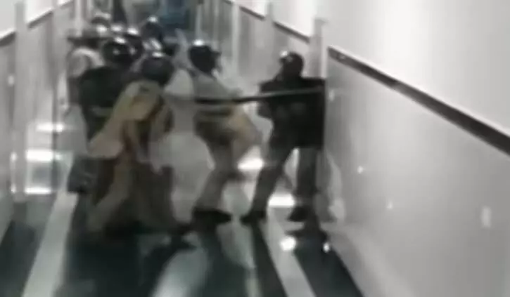 In two other videos, the validity of which was confirmed by the source, the police can be clearly seen dispersing people waiting, and then breaking open a door. It has been reported that police even tried to enter the ICU.