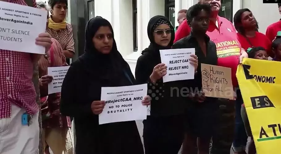 Kathyayini Dash sings Faiz Ahmed Faiz’s ‘Hum Dekhenge’ during an anti-CAA protest in Cape Town, South Africa