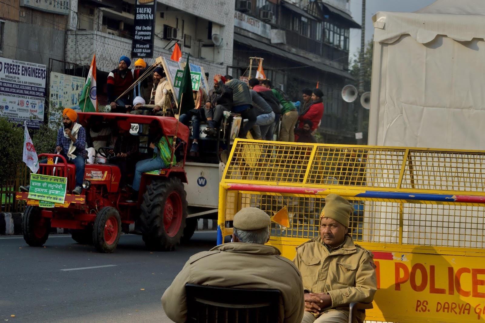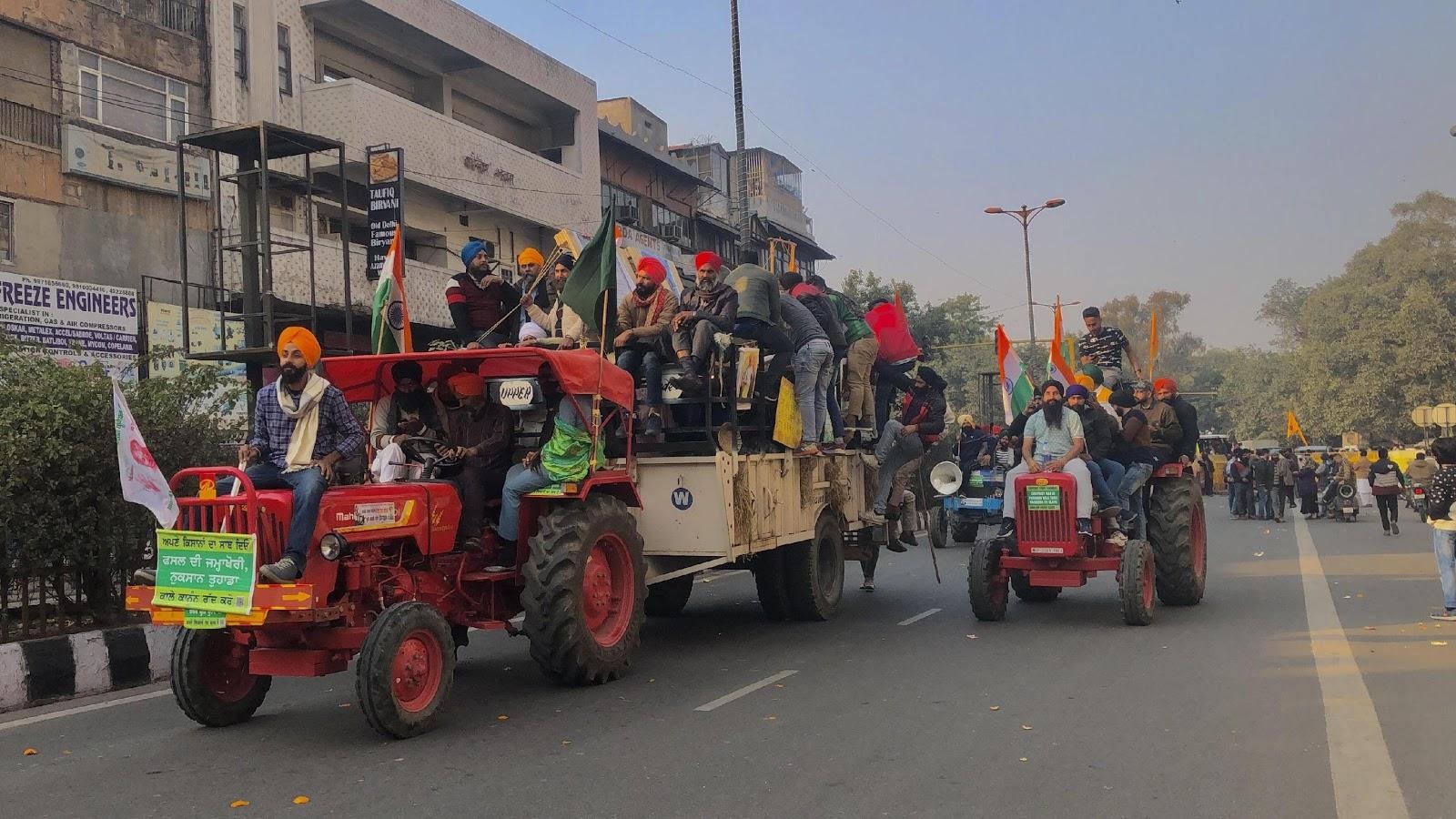 Protesting farmers on the streets of Delhi.