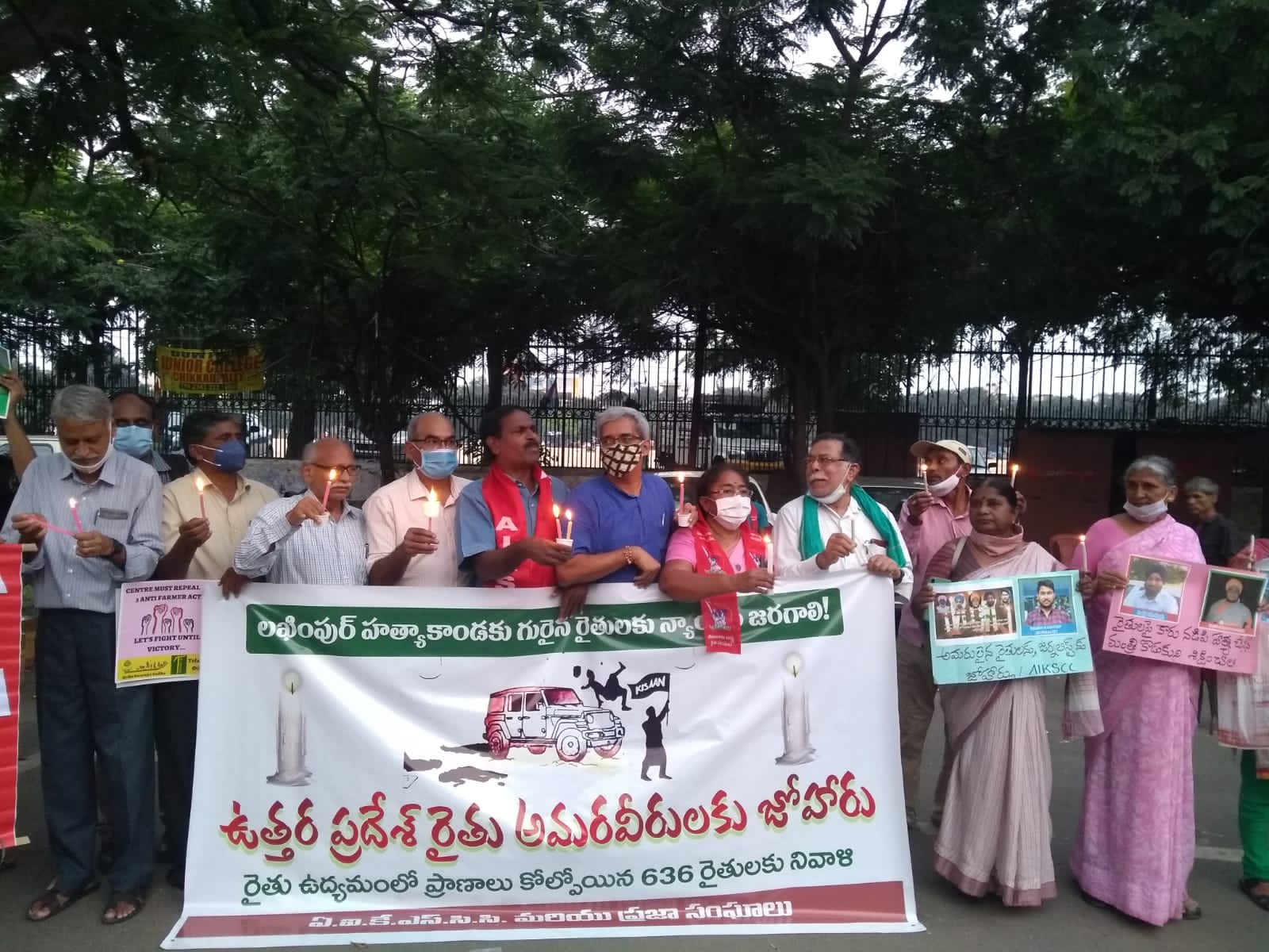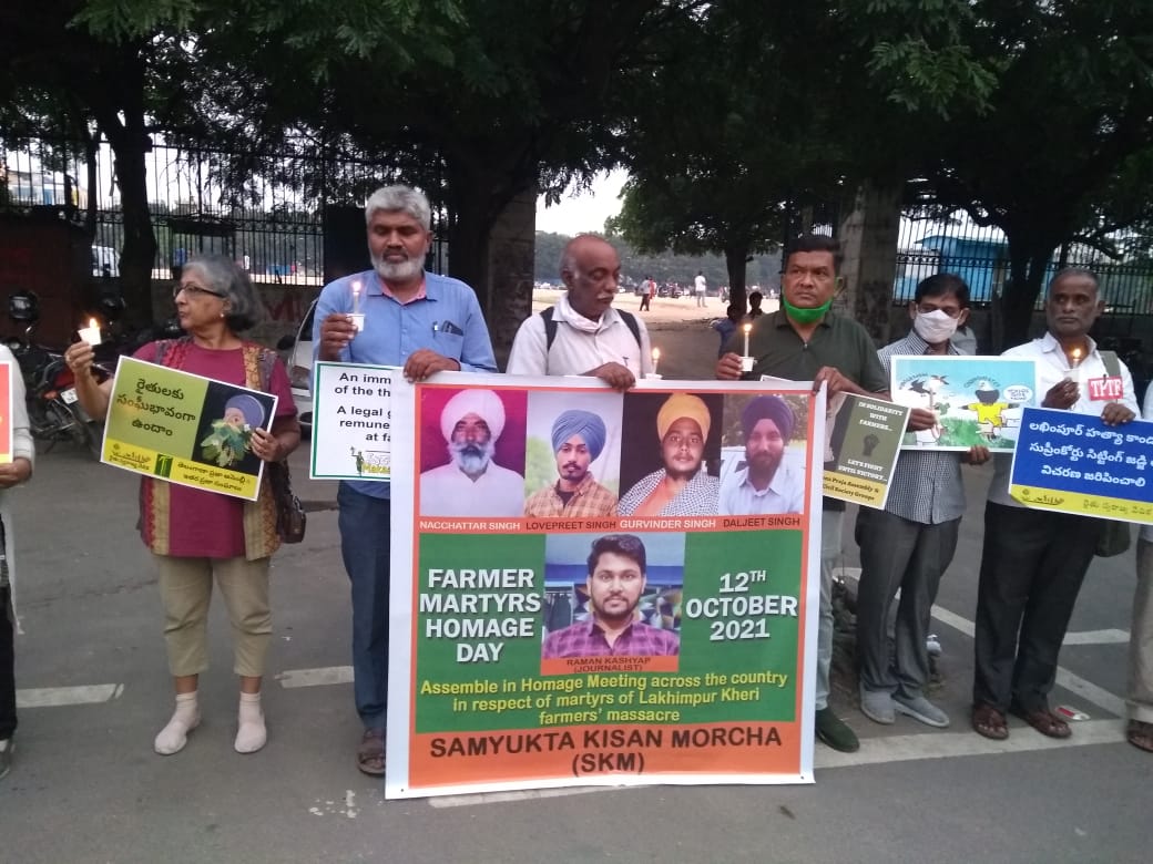 Tuesday saw prayer meetings and candle light marches not only in Lakhimpur Kheri where the ‘bhog’ (a post death ritual) was organized by Samyukta Kisan Morcha but in small towns and villages in various states – reports and photos were received of events in Punjab, Haryana, Uttar Pradesh, Uttarakhand, Madhya Pradesh, Tamil Nadu, Karnataka, Maharashtra, Rajasthan, Andhra Pradesh, Telangana etc.