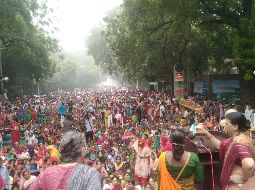 देशभर से आई हजारों महिलाओं ने दिल्ली की सडकों को पाट दिया. अपने – अपने इलाकों से बसों, रेलगाड़ियों और पैदल सफ़र तय करके पहुचीं ये महिलाएं भारी बारिश के बीच राष्ट्रीय राजधानी की सडकों पर बहुत ही धैर्य और दृढ़निश्चय के साथ चलीं. अपने कंधों पर छोटे बच्चों और कुछ कपड़े एवं खाने के समान से भरा एक थैला लटकाये और पैरों में टूटी – फटी चप्पलें पहने देश के 23 राज्यों की महिलाएं सरकार से लैंगिक, खाद्य एवं रोजगार की सुरक्षा मांगने आयीं थीं.