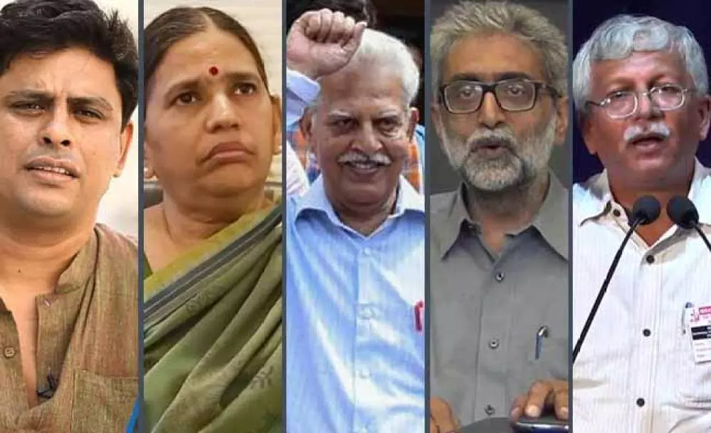 इसी सिलसिले में, पहले पांच सामाजिक कार्यकर्ताओं - महेश राउत, रोना विल्सन, सुरेन्द्र गैडलिंग, शोमा सेन और सुधीर धावले - को गिरफ्तार किया गया था. ये सभी आदिवासियों और दलितों के लिए काम करते हैं. फिर, इस माह, गौतम नवलखा, सुधा भारद्वाज, वरवरा राव, वरनॉन गोंसाल्वेस व अरुण फरेरिया को गिरफ्तार करने का प्रयास किया गया और आनंद तेल्तुम्ड़े सहित कई कार्यकर्ताओं के घरों पर छापे डाले गए.