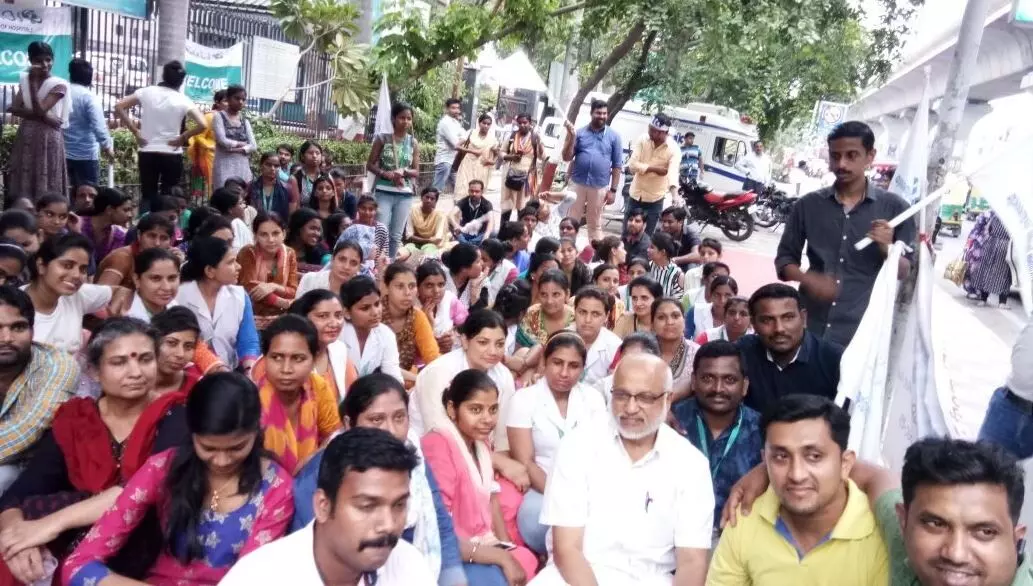 न्यूनतम वेतन के लिए संघर्ष करती नर्स