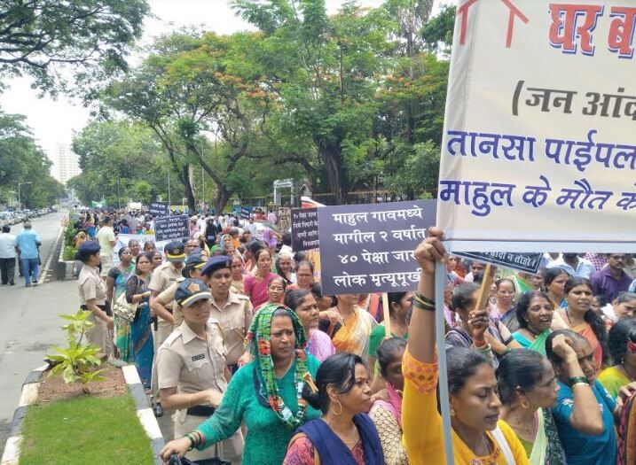 मुंबई के हज़ारों गरीब बारिश के मौसम में सड़क पर उतर कर आंदोलन कर रहे हैं। वे रहने के लिए घर और जीने का अधिकार का चाहते हैं| इनकी शिकायत है एक अच्छी खासी तादाद में लोगों के घरों को उजाड़कर माहूल जैसे पूर्णतः प्रदूषित क्षेत्र में बसाया गया जहां उन्हें बीमारी और मौत के कगार पर धकेलने जैसे हालात मिले हैं। 29 जून को जुलूस में शामिल हज़ारों लोगों में भीमछाया और मंडाला जैसे बस्तियों वे लोग थे जिनके घर उजाड़े गए है और माहूल से महिलाओं ने भी बड़ी संख्या में इस प्रदर्शन में हिस्सा लिया।