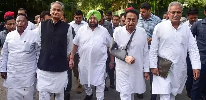 Cover Photograph from the files- Gehlot, Kamal Nath, Baghel with AmarinderSingh who has since left the Congress party.