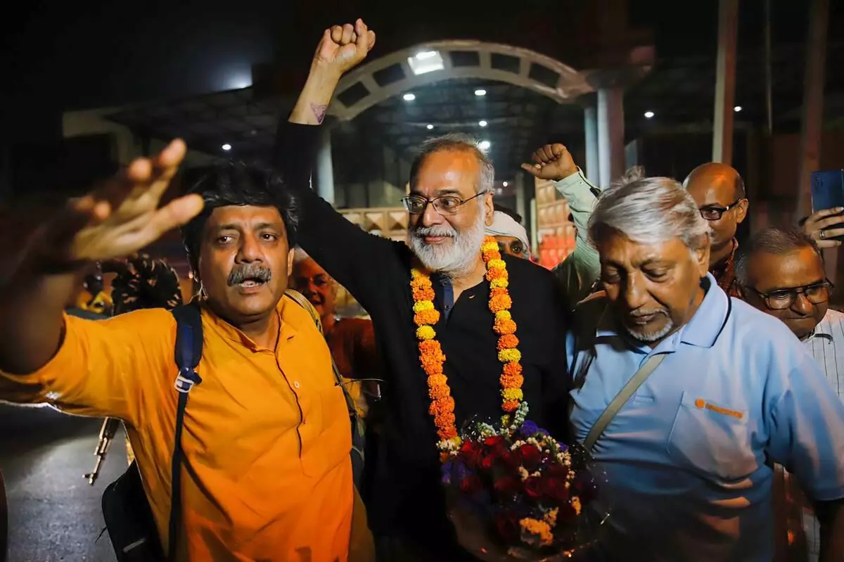 ‘NewsClick’ founder and editor Prabir Purkayastha walked out of jail on Wednesday evening, as friends and family cheered around him.