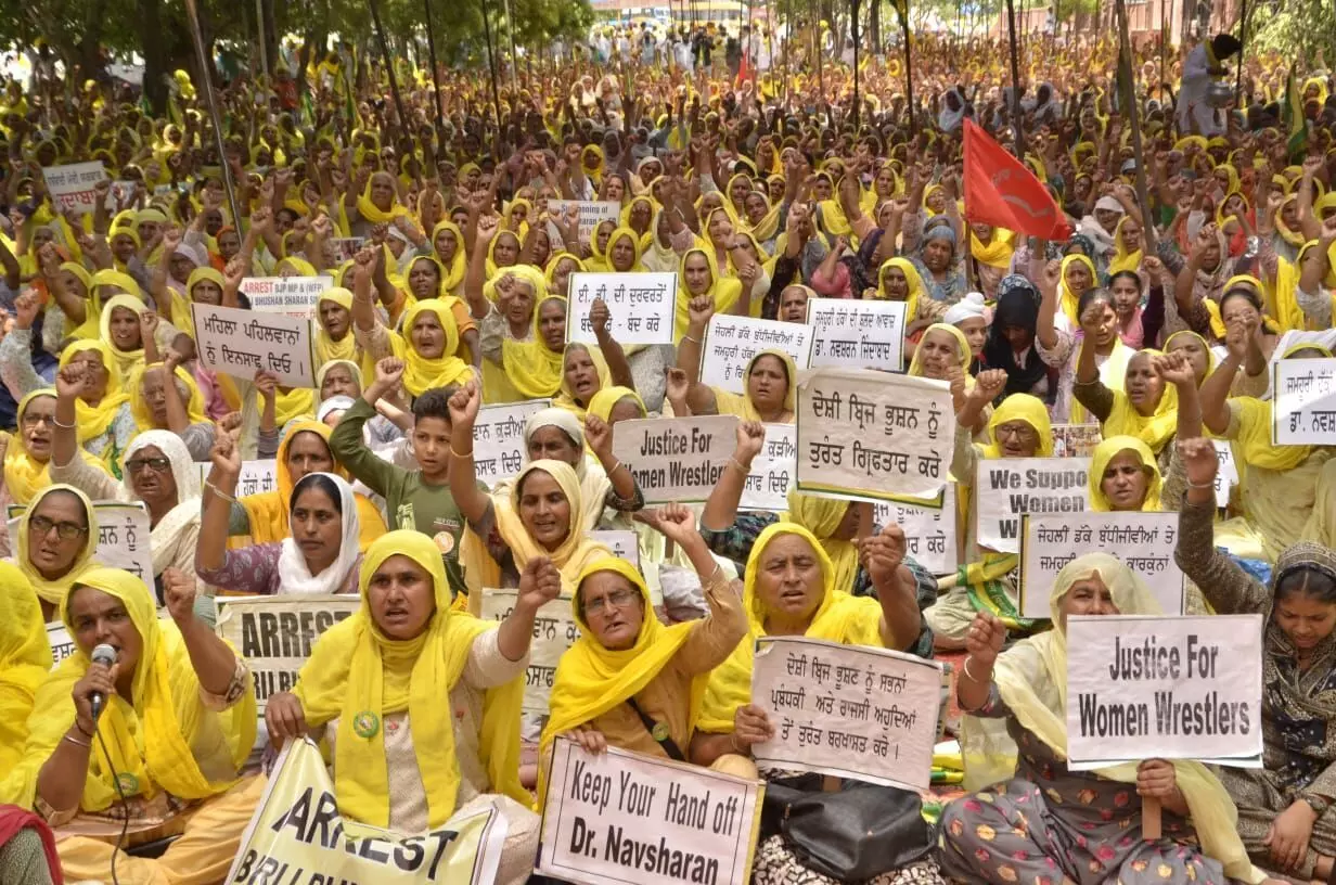 The Bharatiya Kisan Union (Ugrahan) which is one of the foremost farmer organisations in Punjab had organised a major women’s protest along with the Punjab Khet Mazdoor Union on Sunday in Mohali where the issue of the ongoing wrestlers’ protest was a key agenda along with the government using Enforcement Directorate to target top economist and women activist Dr Navsharan Kaur.