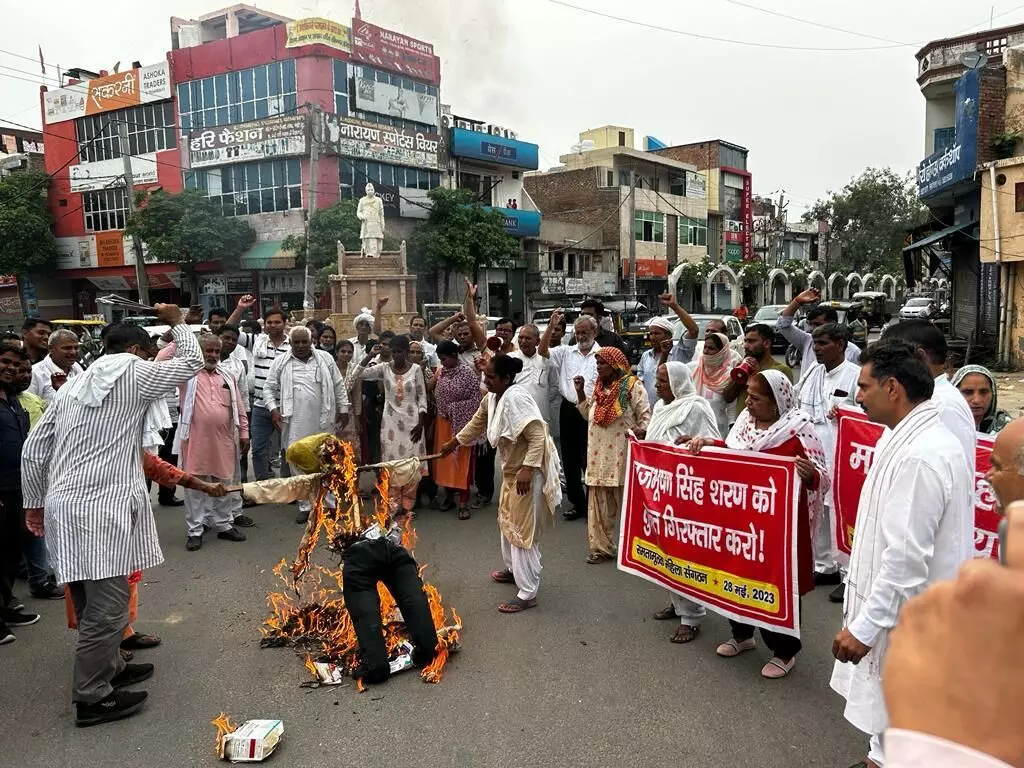 “The people understand that if this is what they do to our international champions one can imagine what they are capable of doing to any ordinary woman,” said Kavita Vidrohi who is an advocate and an activist with Jan Sangharsh Manch Haryana based in Kurukshetra. Her organisation along with Samatamulak Mahila Sangathan protested in Gohana city and burnt effigies of the Central Government and Delhi Police.