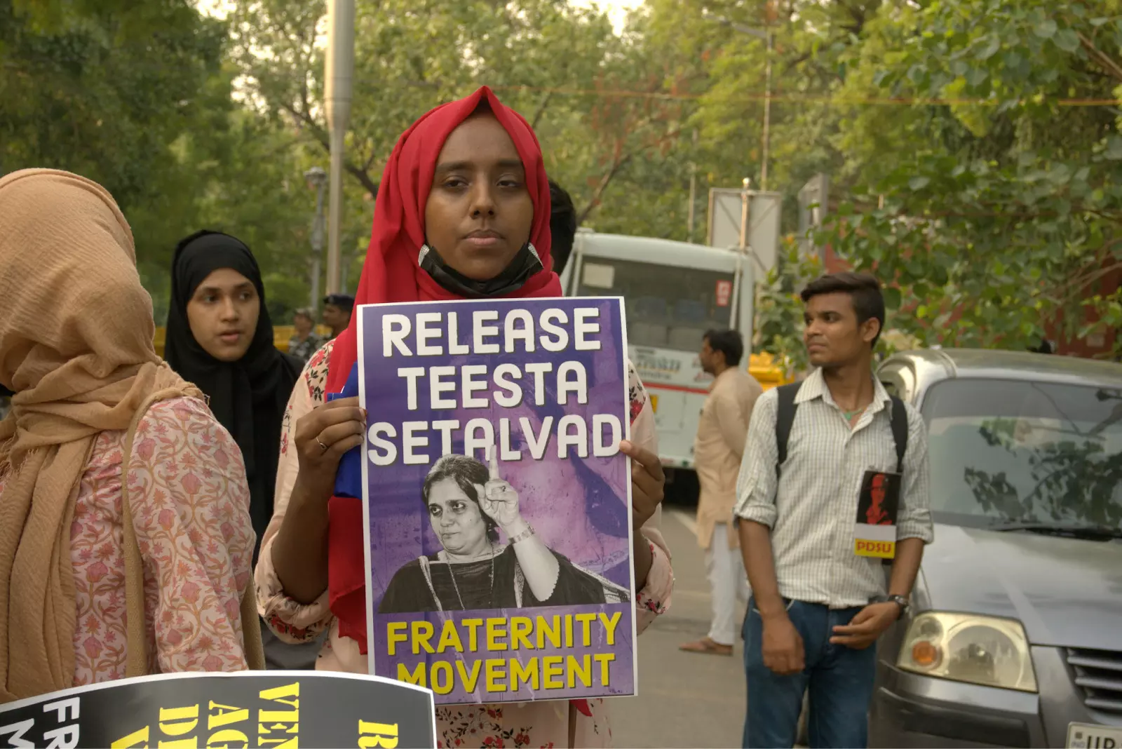 The day after Gujarat police arrested journalist and civil rights activist Teesta Setalvad and former police official R.B Sreekumar, protestors gathered in parts of the country to demand their immediate release.