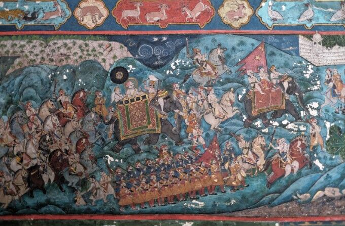 Rajput painting flourished during this time as Rajput kings set up their own painting ateliers providing artists with ample space to develop their art. The art history of the Mughal and Rajput courts is intrinsically linked. Akbar encouraged his nobles to commission illustrated manuscripts of the Ramayana and Mahabharat.