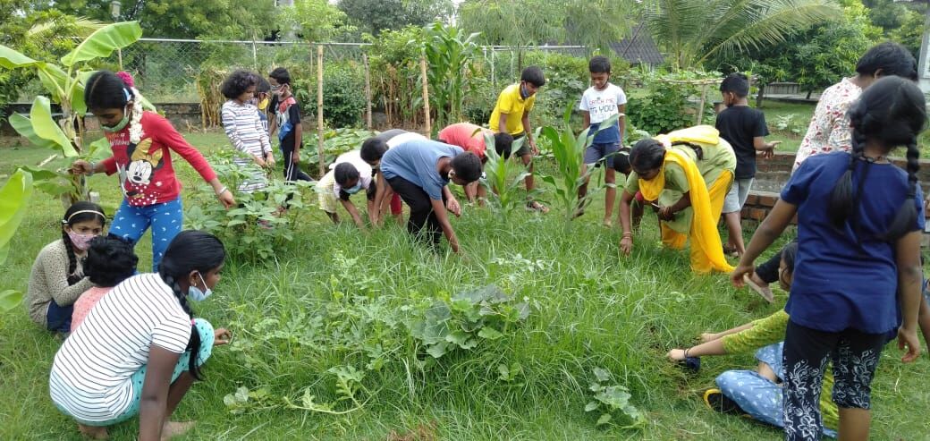 The students at Sai Sankalp Nursery and Primary School were all set to begin their farming class, undoubtedly their favourite one. The lesson for the day was sowing, but just before the class, the children broke out into a traditional Tamil song. With hands on their hips, they moved around in circles, and some clapped to keep the beat. Everybody seemed to be having a great time. The excitement grew when they got down to the soil and got their hands dirty.