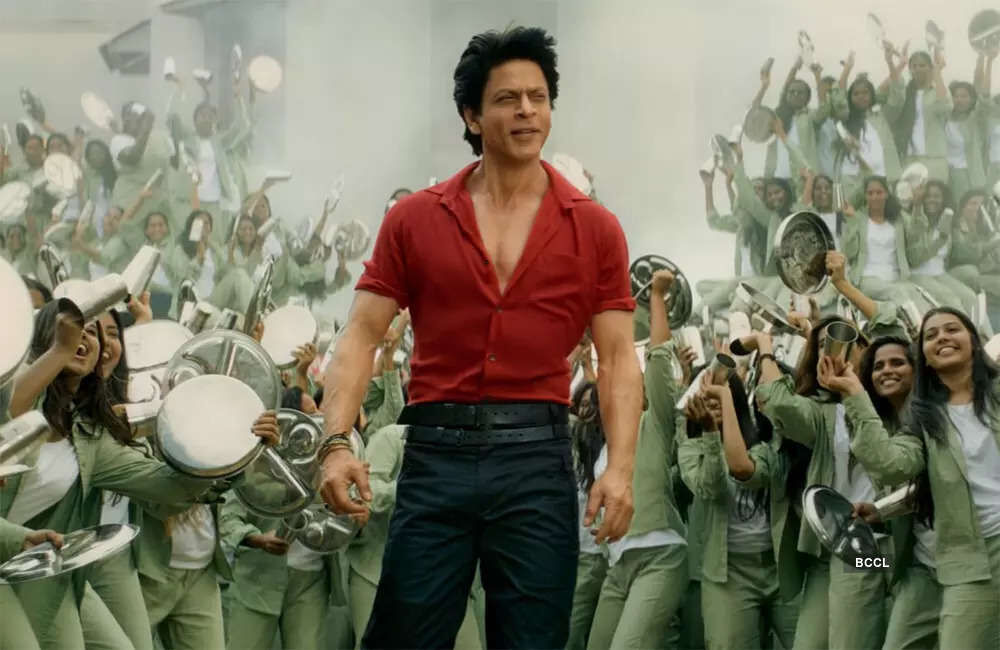 The other song-dance sequence with the younger SRK engaged in a very loud number along with his six young women from the prison who work with him, has a great change in colourful costumes taking us back to the old SRK.