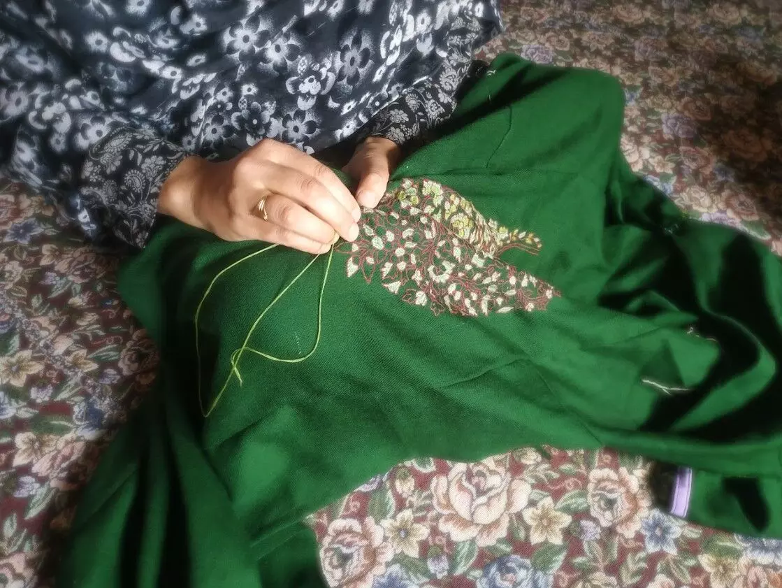 Since Kashmir's famous embroidery known as 'tilla' takes months to complete, many artists say they experience eye discomfort and even blurry vision. "Hand embroidered tilla takes much more time than machine tilla," said Rashid continued, "manual needle work demands a full day of work, which causes muscle cramps and blurry vision."