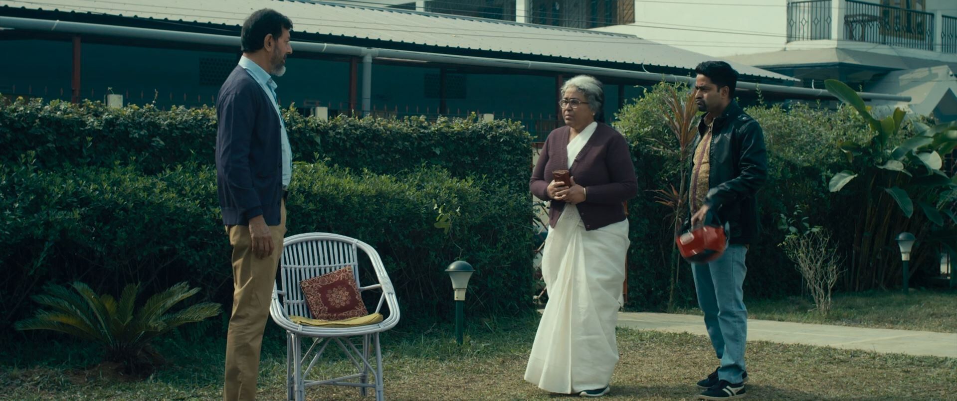 The elderly man, Mudaliar, is not from Assam and has come to stay in the neighbourhood. The woman is surprised to find him enjoying the sun in her enclosed compound and is suspicious of his intentions.