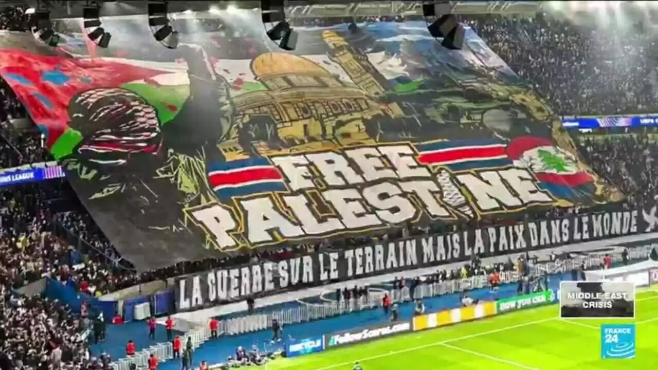 In and around Paris Saint-Germain’s UEFA Champions League final match against Inter Milan on May 31, it seemed as if the entire PSG supporters’ activities focused on Palestine. Chants of “Nous sommes tous les enfants de Gaza” (We are all the children of Gaza) echoed everywhere, inside and outside the stadium. As soon as Achraf Hakimi scored the opening goal, a massive banner was unfurled that read: “Stop the genocide in Gaza.”
