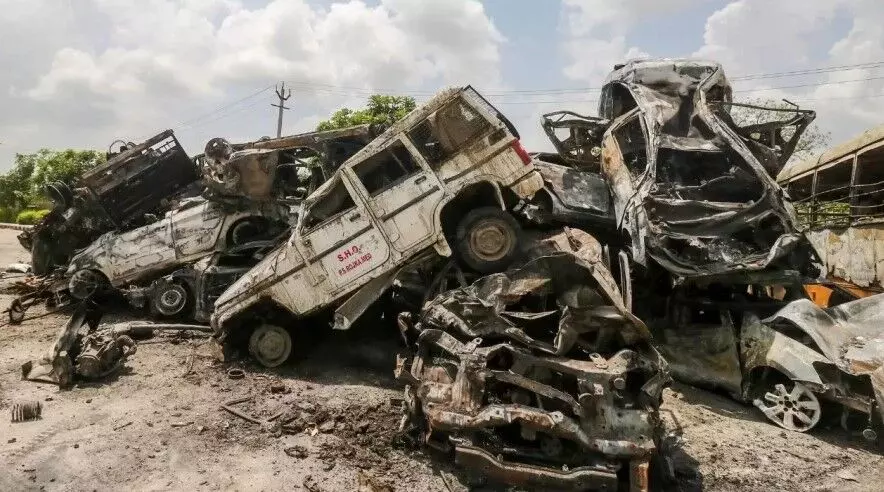 When the procession started, Muslim youth pelted stones but their principal targets were the elusive two, Monu Manesar and Pintu Bajrangi. Where were they hiding? Maybe in the cars parked nearby. The cars were burnt.