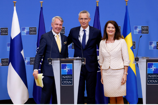 Cover Photograph:Sweden's Foreign Minister Ann Linde and Finland's Foreign Minister Pekka Haavisto attend a news conference with NATO Secretary General Jens Stoltenberg last July. Reuters