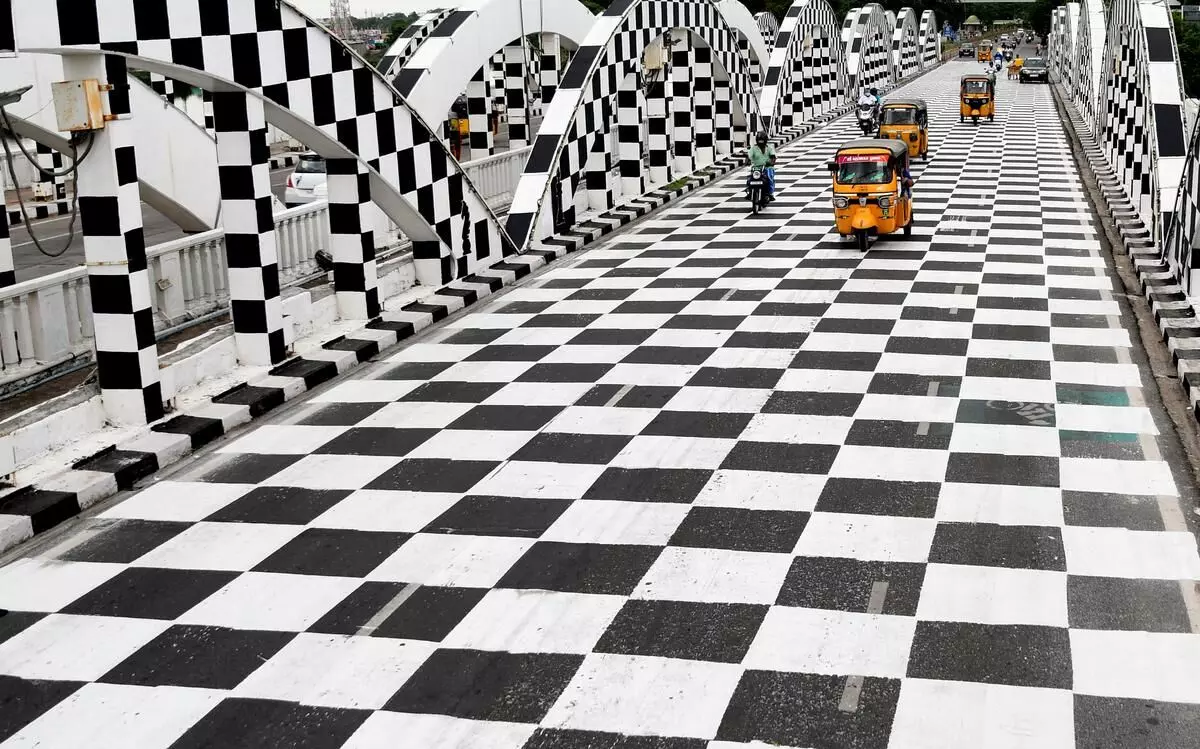 The iconic Napier bridge was painted like chess squares, and school students performed
