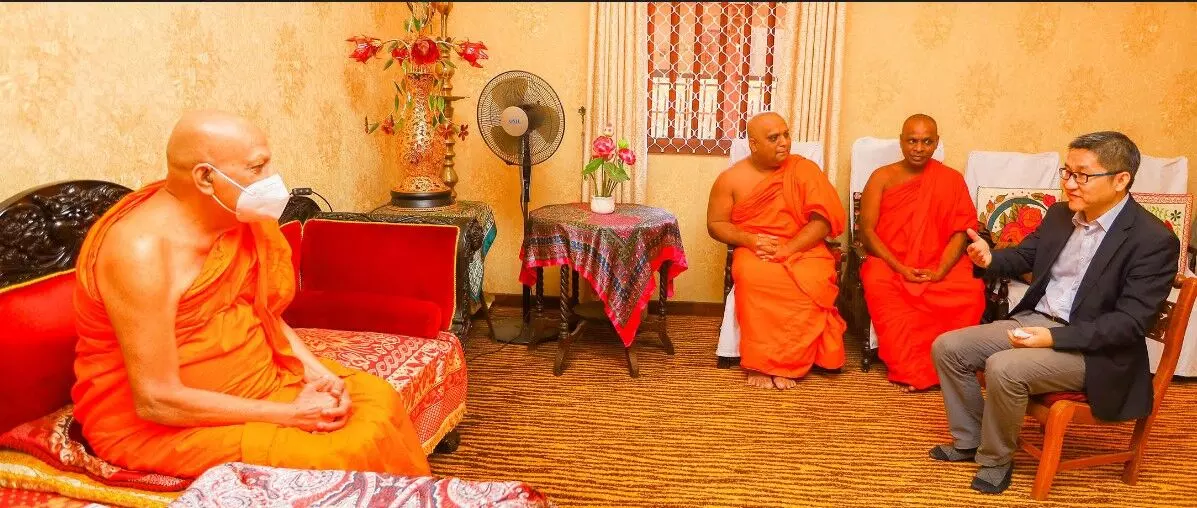 The Chargé d'affaires of the Chinese Embassy in Sri Lanka Hu Wei, called on the Mahanayake Thero of the Malwathu chapter of the Siam Nikaya, the Most Venerable Thibbatuwawe Sri Siddhartha Sumangala Thero in Kandy on January 11 and told him that China strongly opposes the rumored visit of the 14th Dalai Lama to Sri Lanka.