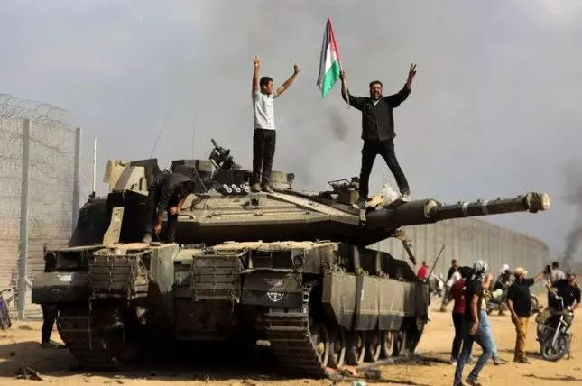 The well read Israeli newspaper Haaretz has carried an article pointing out that the Hamas victory underlines Israeli defeat. Israeli intelligence and military focus has for long been on the Palestinians, and Gaza in particular, where even a fly suspected to be rebellious is swatted with chilling precision. The barriers have seemed impregnable, but the apparent ease with which a group of trained Palestinian fighters armed have moved through Israeli lines has created shock — not just outside but more within Israel where the peace lobby advocating co-existence has been reinforced to some extent. Although their voices are subdued there are many in Israel advocating peace, and opposed to the constant provocation and attack on Palestinians that Tel Aviv has been pursuing for decades. Al Aqsa mosque and the events around it are a case in point.