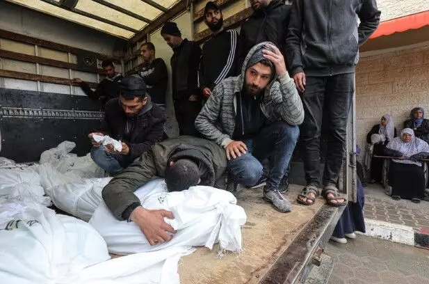 Cover Photograph:Family members of Palestinians killed in Israeli attacks mourn over their bodies at the morgue of Al-Aqsa Martyrs Hospital in Deir al-Balah, central Gaza, on 15 February. Ali HamadAPA images